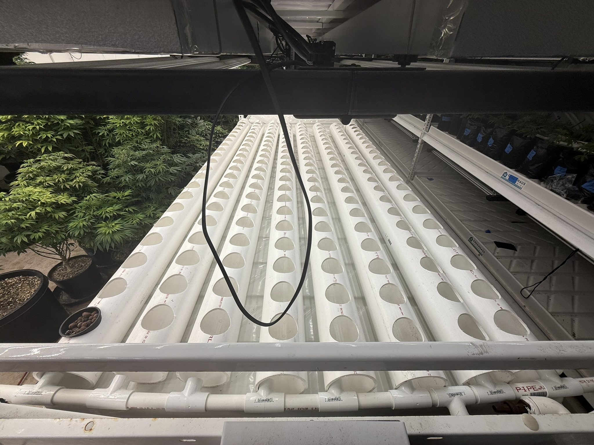 Hydroponic shallow water culture (SWC) system for cannabis vegetation. Optimized for root oxygenation, nutrient uptake, and rapid vegetative growth.